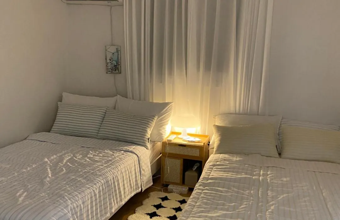 Stay In Hannam Twin Room A Shared House Format 首爾位于龙山区,毗邻三星美术馆Leeum,距离首尔塔有10分钟车程。 公寓设有共享休息室。客人可以在露台上休憩放松。